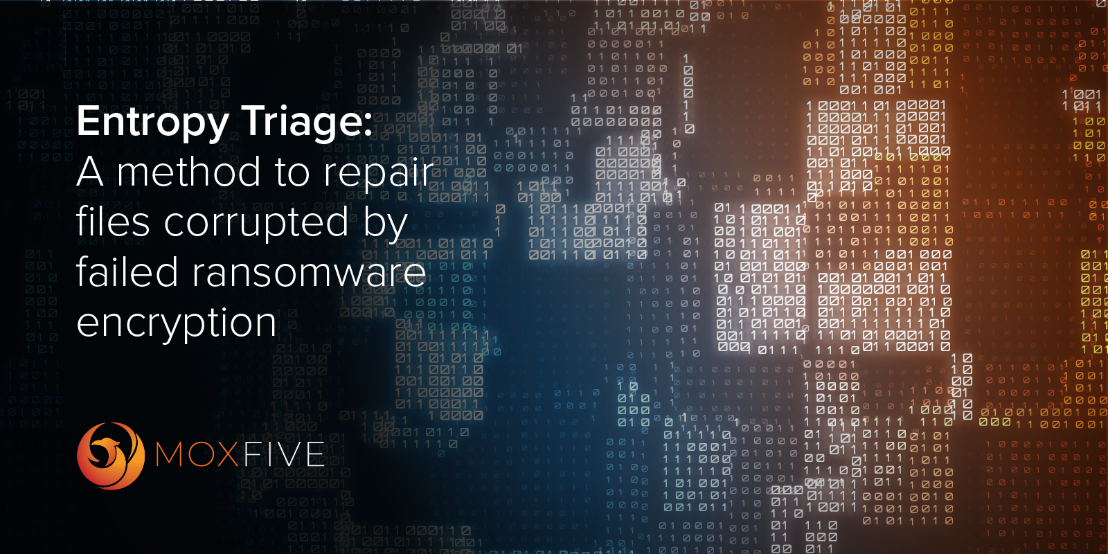 Working with our colleagues at Coveware, MOXFIVE identified entropy-based block selection (EBBS, or “entropy triage”), a method to repair these corrupted files in some circumstances. Entropy triage has been most successfully implemented as a feature to Coveware’s Unidecrypt tool which through a library of patches, has achieved 90%+ success repairing corrupted virtual disks, significantly improving outcomes for affected clients.